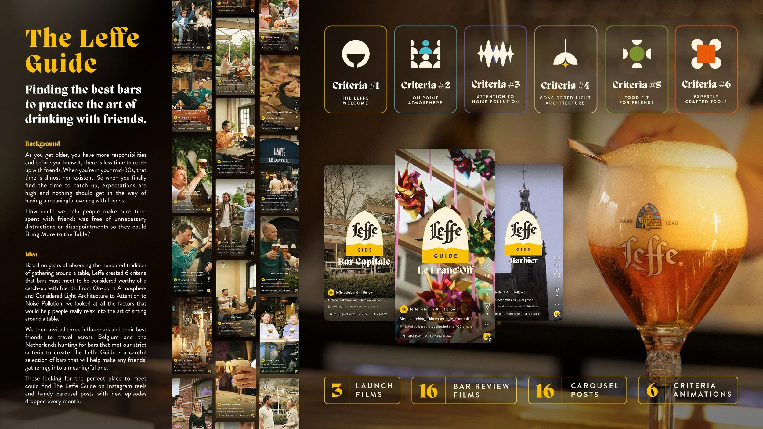 The strategy came to life with Nuggets of Wisdom (social media content series), Friends Table (Consumer activation) and Leffe Guide (influencer activation)